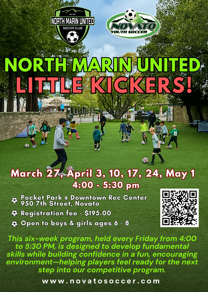 North Marin United—our competitive program—is hosting Little Kickers for recreational players, ages 6 - 8, who are ready to explore a higher level of play.